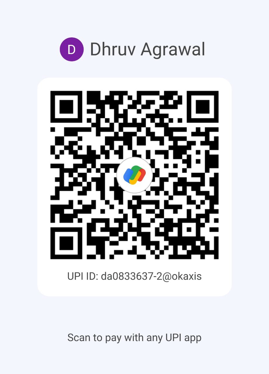 Bank Name: Axis Bank A/c holder Name: Mr. Dhruv Agrawal Account No:925020011487599 IFSC Code:UTIB0001837